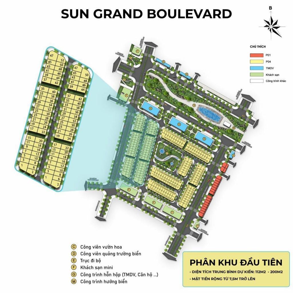 - Hiện đang thực hiện Booking (Giữ chỗ) 93 lô liền kề tại phân khu SUN GRAND BOULEVARD thuộc Quảng trường biển Sầm Sơn